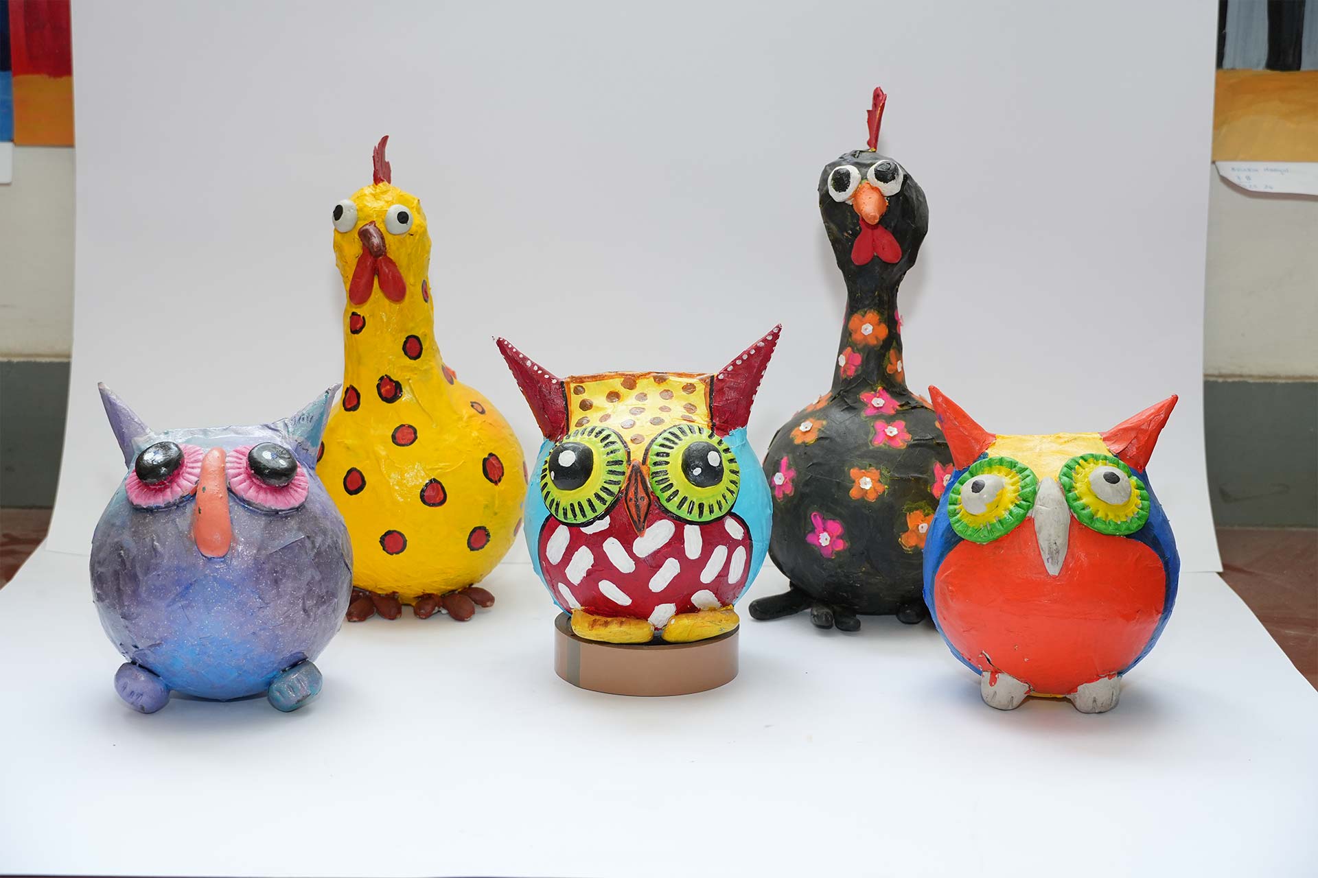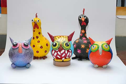 Grade 8 presented Swirls of a Rose, highlighting symmetry in floral compositions, along with papier-mâché Wabi-Sabi Birds inspired by the beauty of simplicity and imperfection. Grade 7’s A Linear Look featured expressive portraits drawn using a single continuous line, demonstrating the power of minimalism.