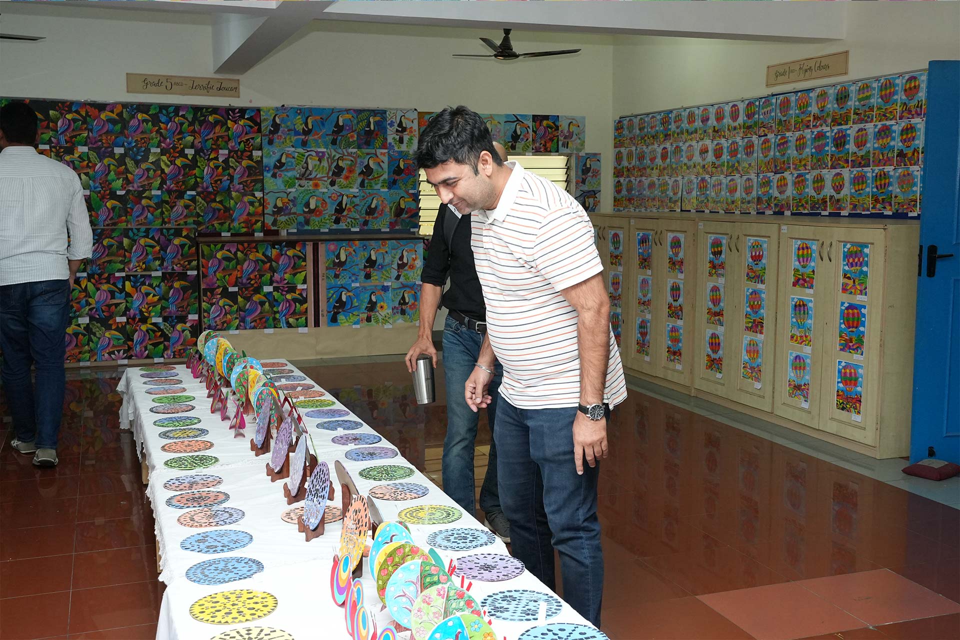 Grade 3’s Under the Sea drawings beautifully captured aquatic light effects through careful shading. Grade 2 impressed with detailed Sublime Succulents and vividly coloured seasonal trees. Our youngest artists in Grade 1 charmed visitors with bright parachute compositions and creative concentric circle designs.