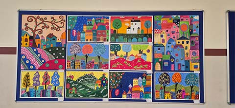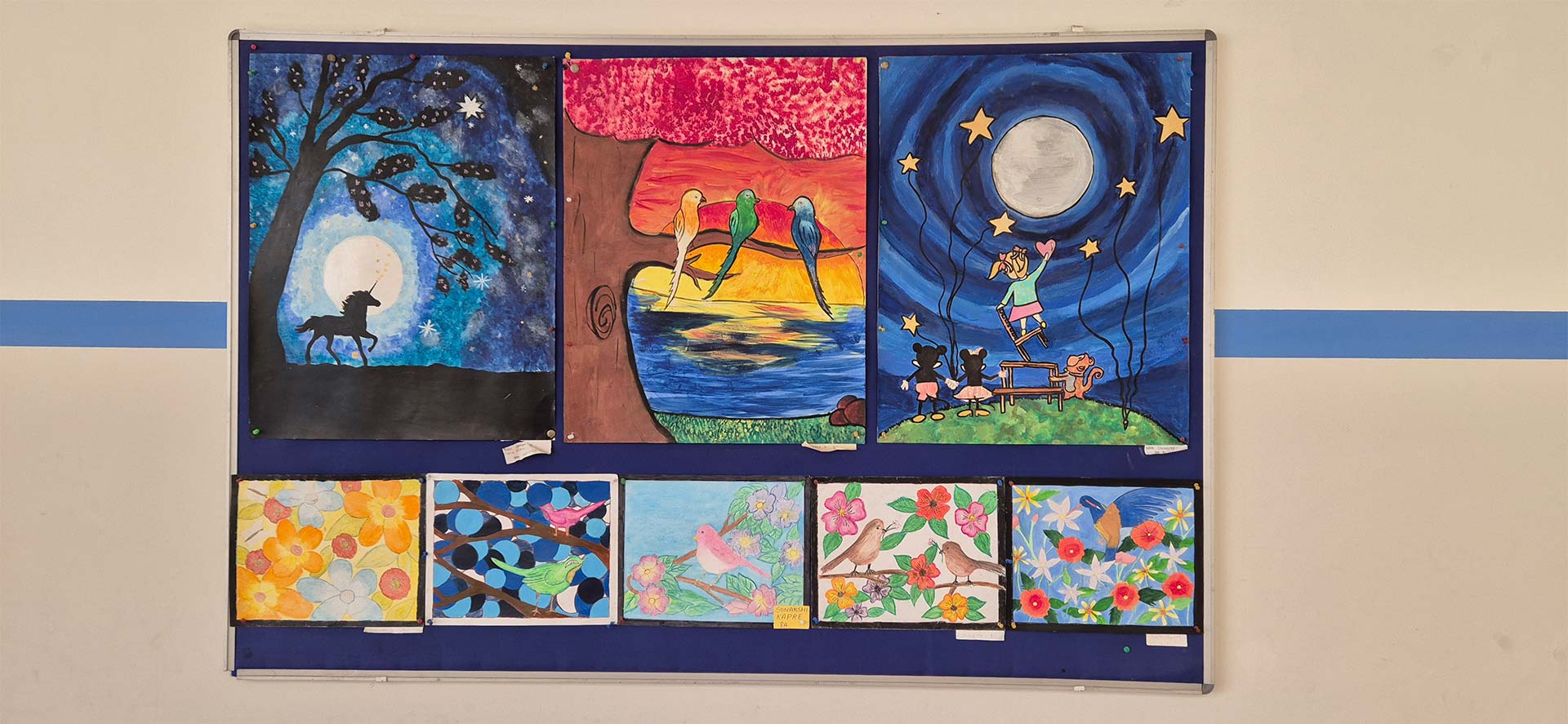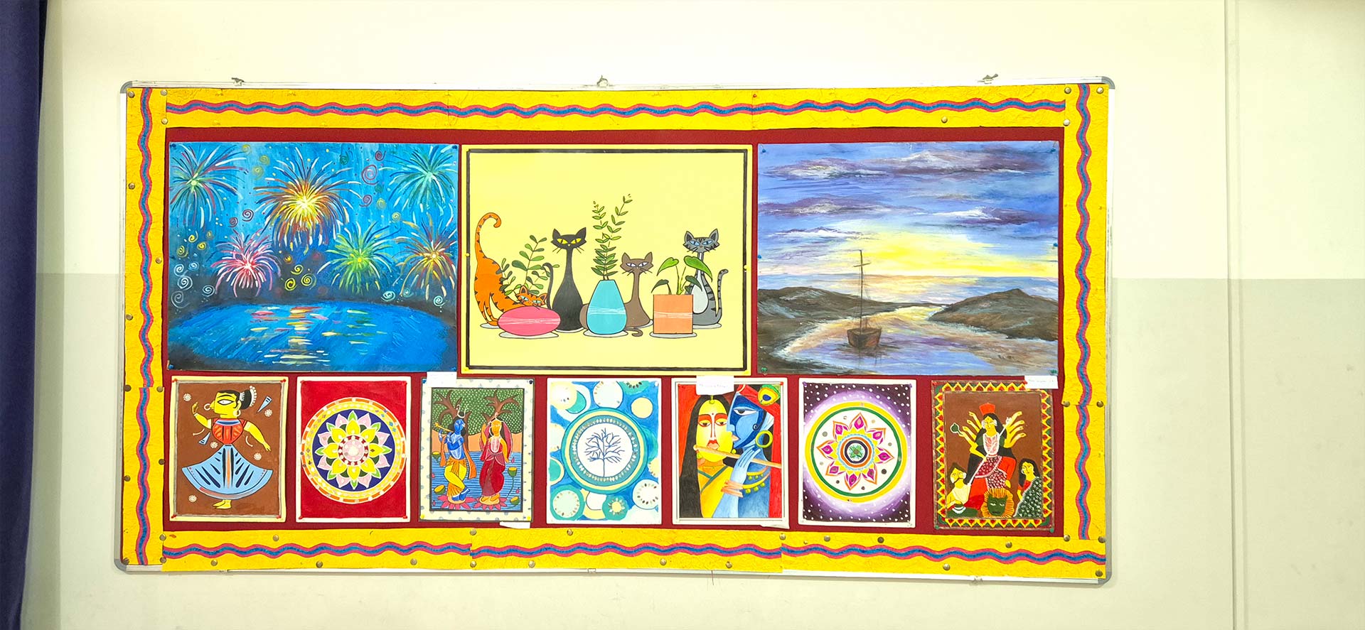 The Annual Art Exhibition, held from 11 February 2025 onwards, displayed a remarkable collection of artwork created by students from Grades 1 to 10. The Art Room came alive in a riot of colour, where every wall and corner burst with creativity, imagination, and ingenuity. The school’s corridors, too, reflected this artistic energy, as bulletin boards were adorned with vibrant paintings and murals.
