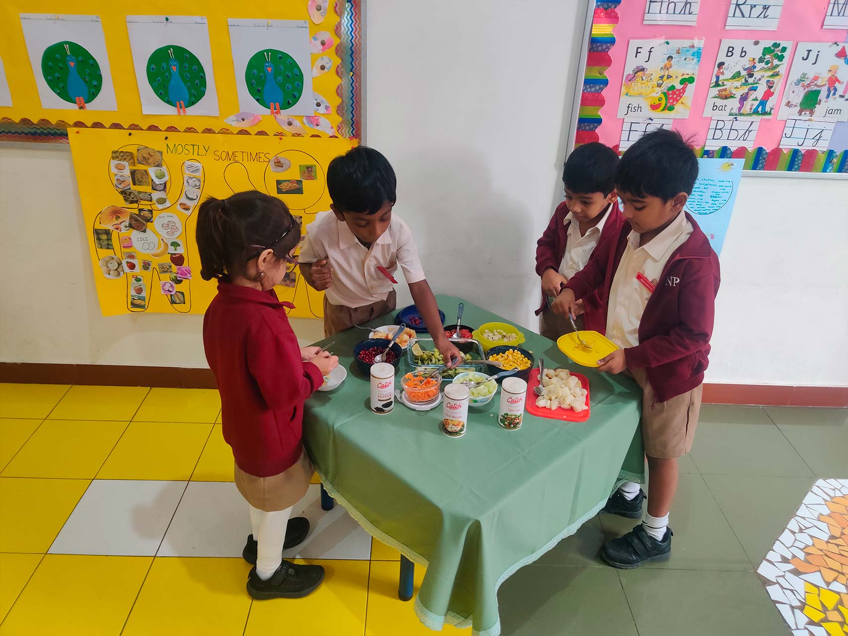 At Kindergarten, learning about healthy living was made fun and exciting through our weeklong Health Week celebration. Throughout the week, children participated in a variety of interactive activities and games ranging from lively Zumba sessions to fun talks on hygiene, from intake of sugar to nature walks, from hands-on salad-making to importance of sunlight. Each activity was thoughtfully planned to encourage children to understand that health is not just about food, but also about movement, cleanliness, rest, and happiness.