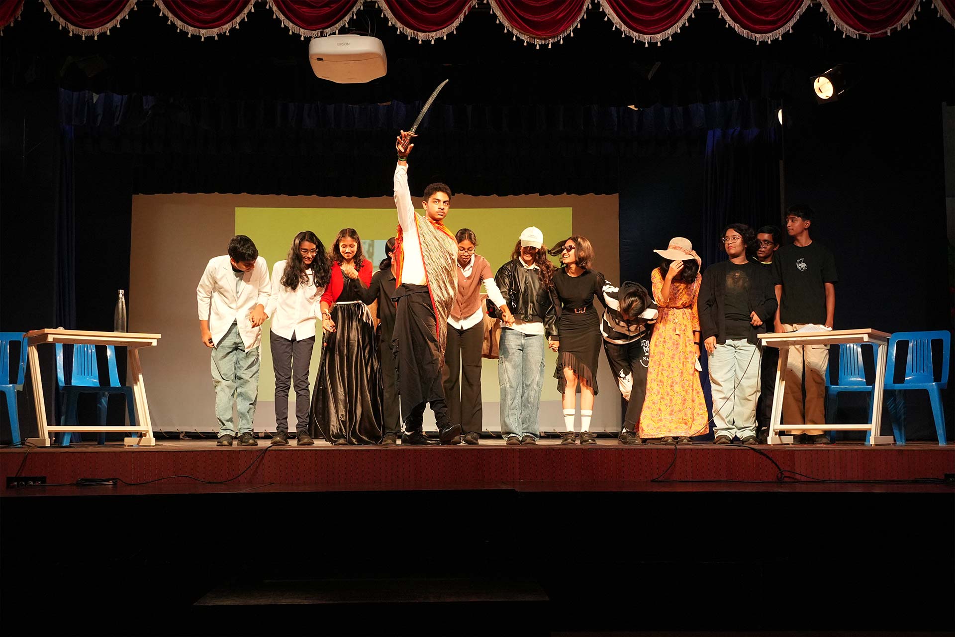 Children’s Day was celebrated on 14th November with a programme that featured a blend of cultural performances, artistic expression and interactive entertainment. The programme commenced with a classical invocation dance, performed by Ms. Lakshmi N, which set a reverent tone for the event. This was followed by a witty and imaginative play presented by the Grade 10 VPA students, who with a clever fusion of Shakespearean English and contemporary slang/argot/colloquialisms, delivered a humorous act that captivated the audience and showcased their theatrical talent.