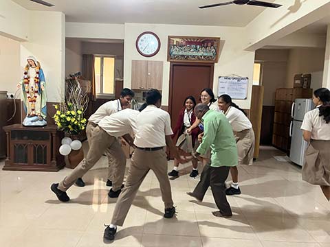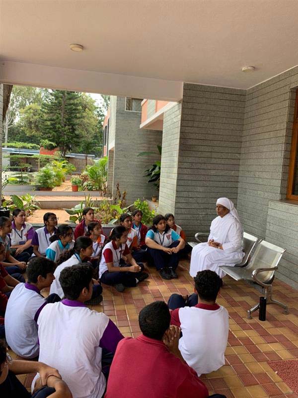 As part of their SEWA project, students of Class 10 visited the Little Sisters of the Poor Old Age Home in Hosur—an international congregation dedicated to caring for the elderly poor with compassion and dignity. The students were warmly received by one of the sisters, who guided them through the Home and shared how the residents engage in meaningful activities like helping with laundry, making paper bags, preparing vegetables, crafting, and enjoying TV time. The experience reinforced their responsibility to care for their grandparents and show kindness to seniors in the community. The visit renewed their faith in humanity and left them grateful for the opportunity to connect, learn, and contribute.