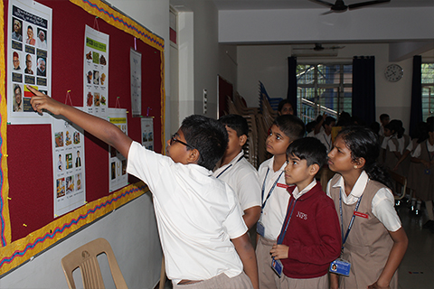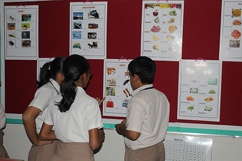 These interactive sessions included learning about the history of Kannada literature and learning and naming everyday items such as groceries, fruits and vegetables in Kannada. Some stations helped students understand the common errors that are made in pronunciation. Many charts and learning materials were also on display to facilitate learning. The learning stations were open to everyone in the school.