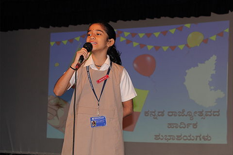 A special assembly was also conducted by the Kannada language department. This assembly showcased Kannada skits, songs and dance performances that portrayed Kannada folk dances. In addition, Kannada handwriting competition was also held for the students.