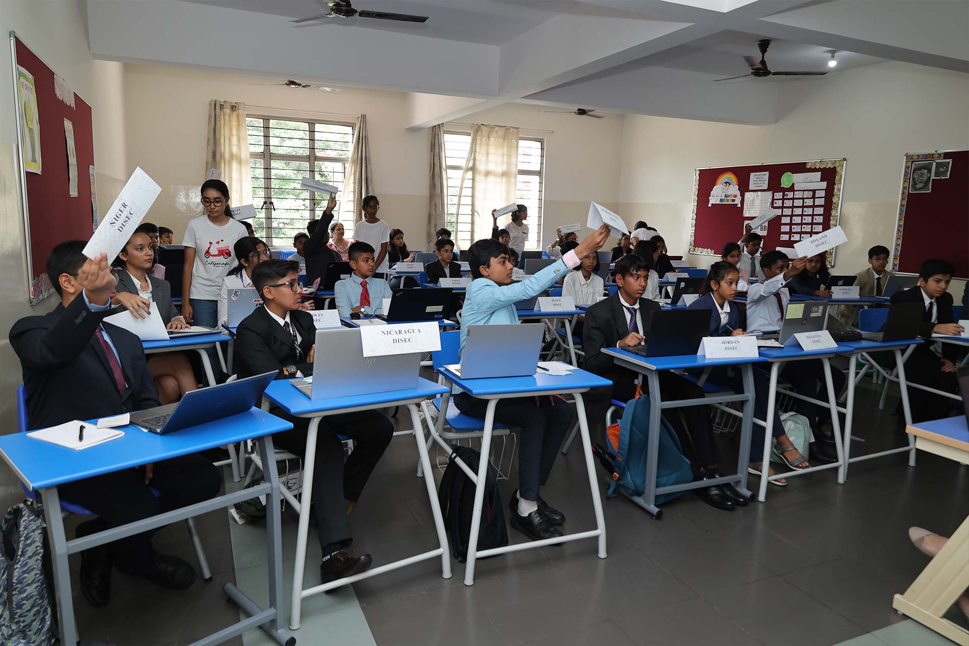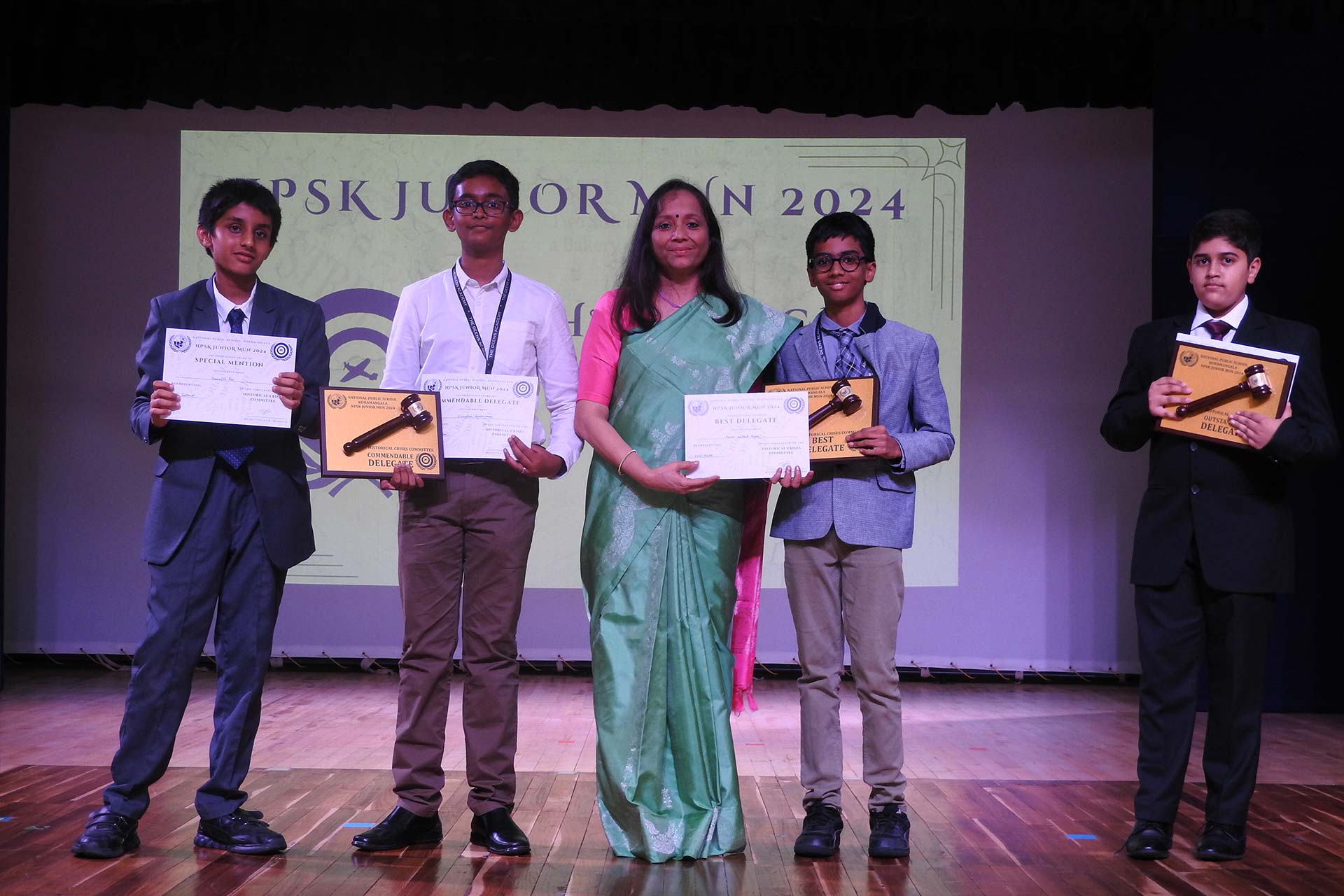 NPS Koramangala hosted its first Junior Model United Nations conference on the 5th and 6th of May 2024. The event saw 138 participants from eleven schools lock horns across the four committees, the All-India Political Party Meet, United Nations Security Council, Historical Crisis Committee, and Disarmament and International Security Committee. The conference was declared open after the Principal Ms. Jyotsna Nair handed over the gavels to the chairs of each committee. All the delegates debated passionately over the world's problems and finding solutions them. NPS - HSR emerged victorious and took home the coveted Best Delegation trophy.