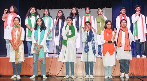 NPS Koramangala celebrated India’s 76th Republic Day on 26th January 2025 with patriotic zeal. The Principal, Ms. Jyotsna Nair, unfurled the tricolour, accompanied by a melodious rendition of the national anthem by students, teachers, and parents. Earlier, on 24th January, the school marked the occasion with a cultural programme. The programme started with a mellifluous patriotic rendition of the song Tiranga followed by a series of graceful dances performed by Grade 9 Visual and Performing Arts students to a medley of songs, leaving the audience feeling a deep sense of love for the nation. An ardently eloquent and insightful speech by Ms Aparna Mrig, Faculty Member invoked the spirit of patriotism and individual potential within the audience. She highlighted the journey of India from independence to becoming a republic and emphasized the role of students as future torchbearers. She encouraged students to strive for excellence in their chosen fields, concluding her speech with a call to uphold the Fundamental Duties outlined in the Constitution and to work collectively for a better India.