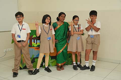 A special highlight of the programme was a beautifully sung and enacted musical role-play in Kannada based on the inspiring life of noted Indian environmentalist Saalumarada Thimakka. The Hindi group further enriched the experience by conducting engaging and interactive games for parents, such as identifying Hindi rhyming words and composing short poems using them. These activities fostered active participation and strengthened the home–school learning connection.