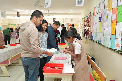 The most distinctive feature of the symposium was the interactive learning experience conceptualised and curated entirely by the students. Multiple stations, thoughtfully designed and managed by the young poets, guided parents through various poetic forms, literary techniques, and the step-by-step poetry writing process followed in class. The stations also featured engaging activities, interesting facts about poetry, and creative literary games devised by the students themselves. Parents were warmly invited to participate, making the event both immersive and meaningful.